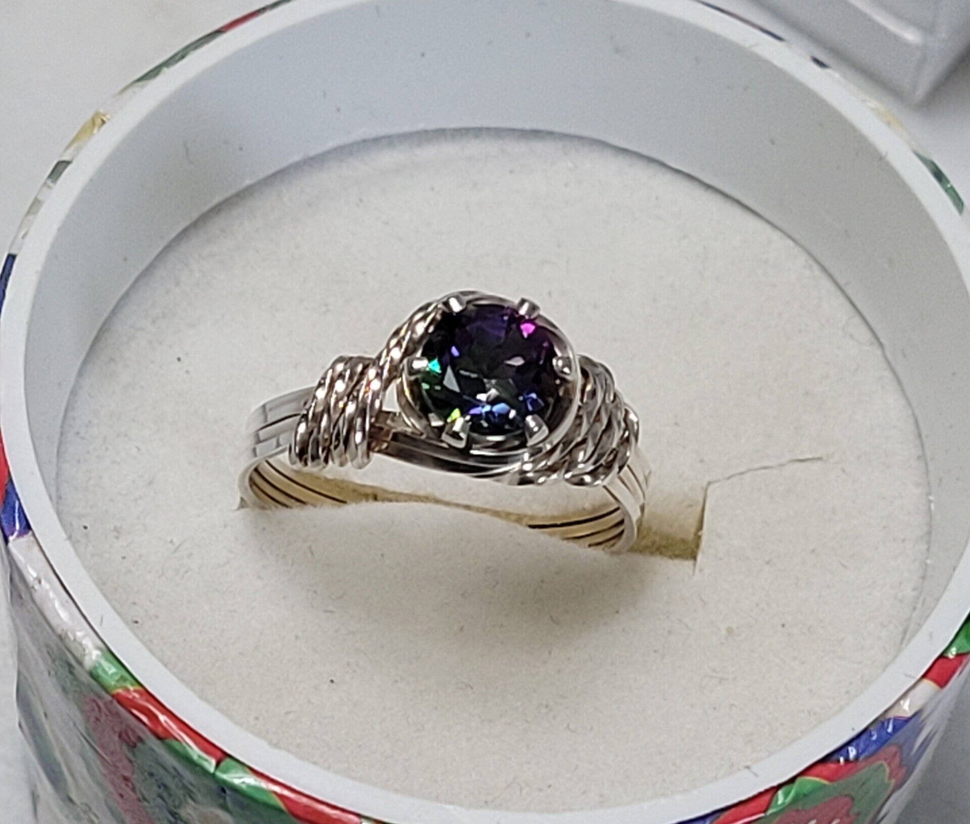 Beautiful Cosmopolitan topaz .925 streling silve wire sculpture ring